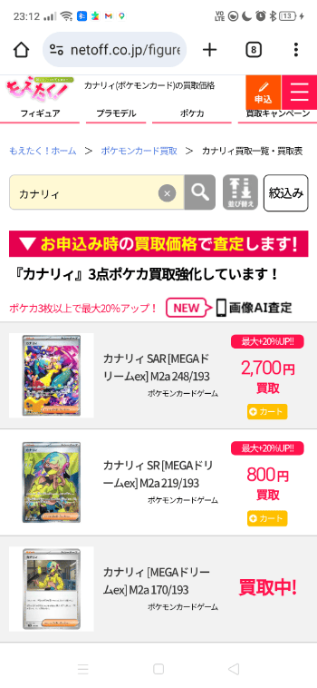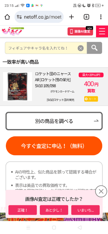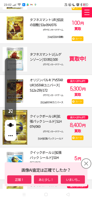 精度は微妙だけれど、売りたいカードをパッと査定できる良いサービスでした。